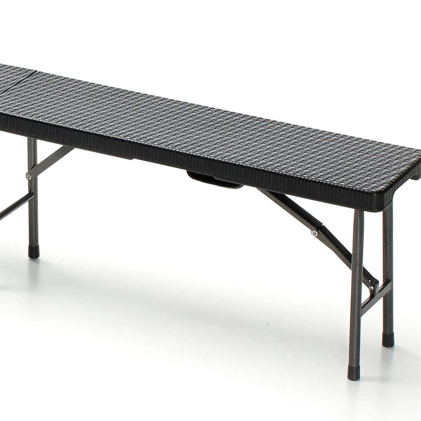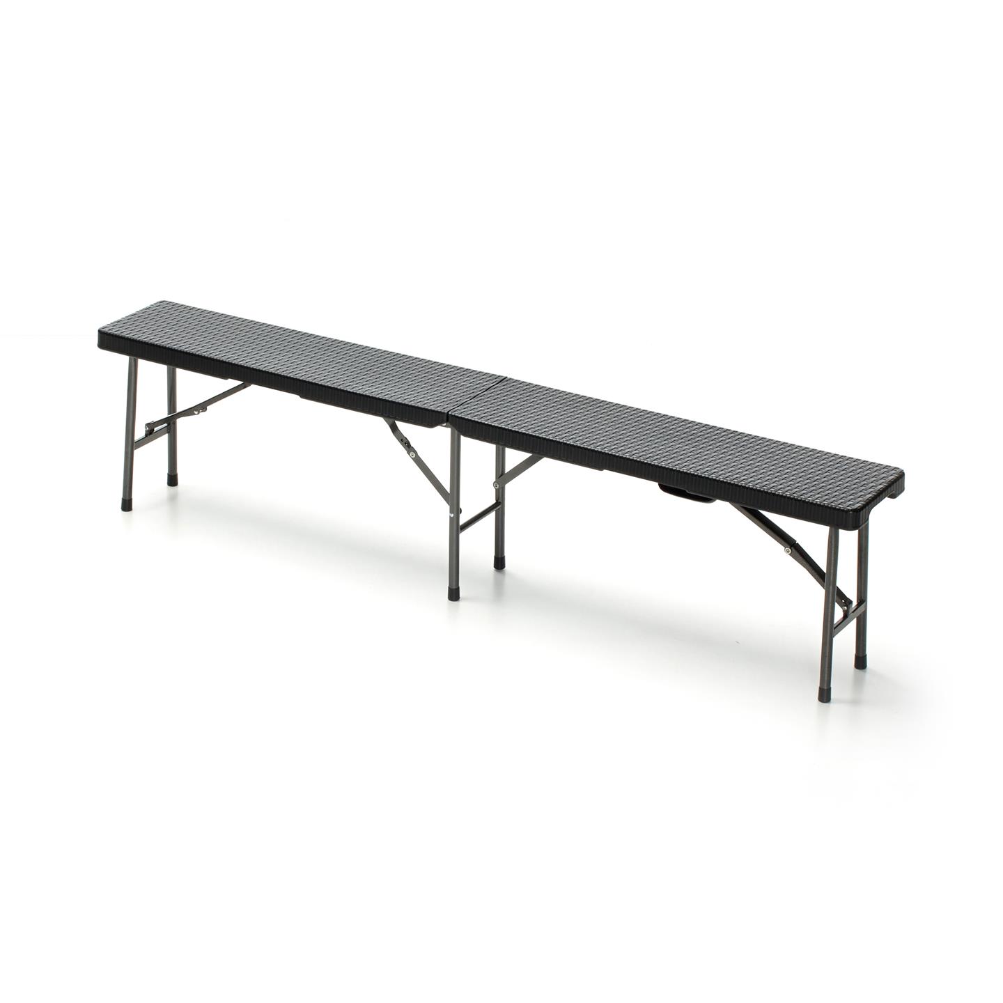 Bank mit grau pulverbeschichteter Eisenstruktur, Sitzplatte aus High Density Polyethylen (HDPE), schwarz, mit UV-Behandlung, Sitzfläche 4.5 cm stark, Abmessungen 182 X 25 X 43 cm, Rohre Ø 22 X 1,0 mm