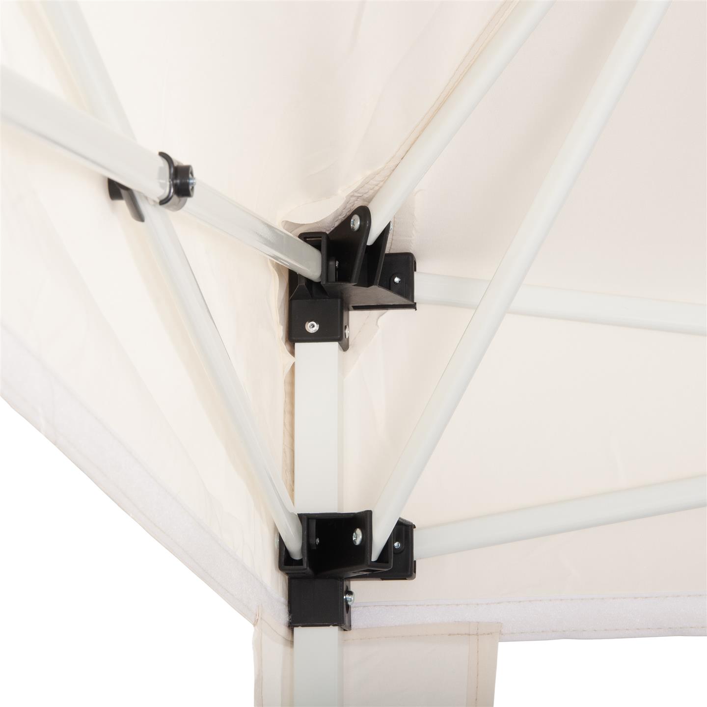Gazebo, schnell faltbar, mit Belüftung, 8 Heringe, Seil und Tragtasche, ecru pulverbeschichtetes Stahl-Gestell, 3-fach verstellbare Beinenhöhe, Dach-Bezug aus weißem Polyestergewebe 180 g/m2, Eckschals aus weißem Polyestergewebe 140 g/m2. Nylon Kupplungen. 200X300X270 cm, oberes Gestänge 25X25X0.6 mm, unteres Gestänge 20X20X0.6 mm, Bezug-Stäbe 10X18X0,5 mm.
