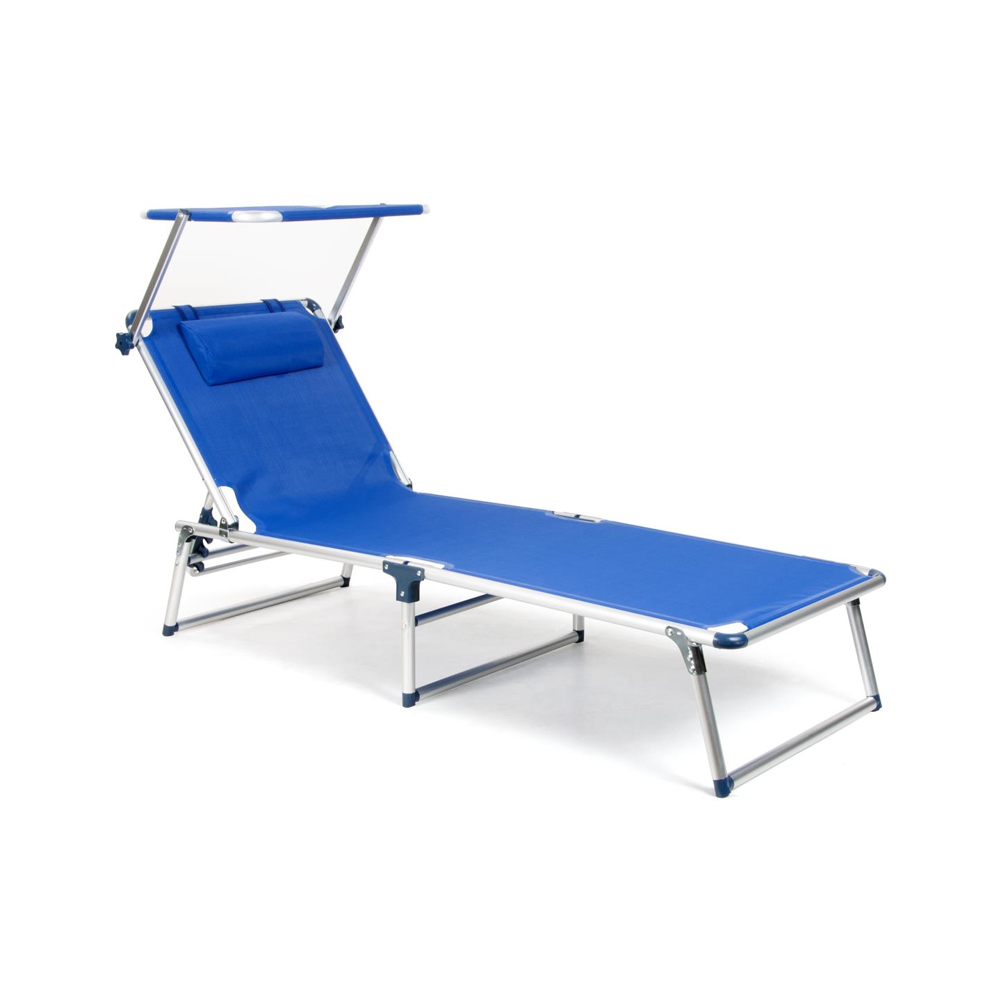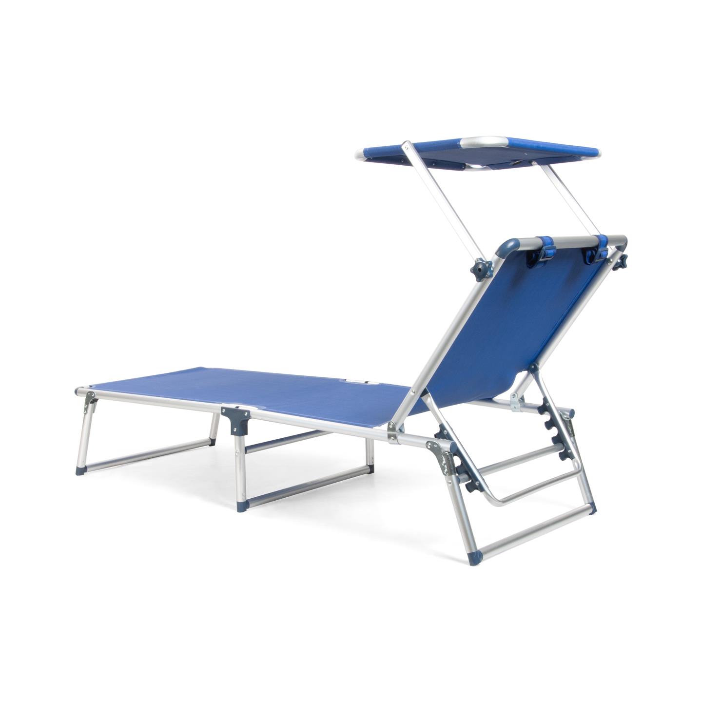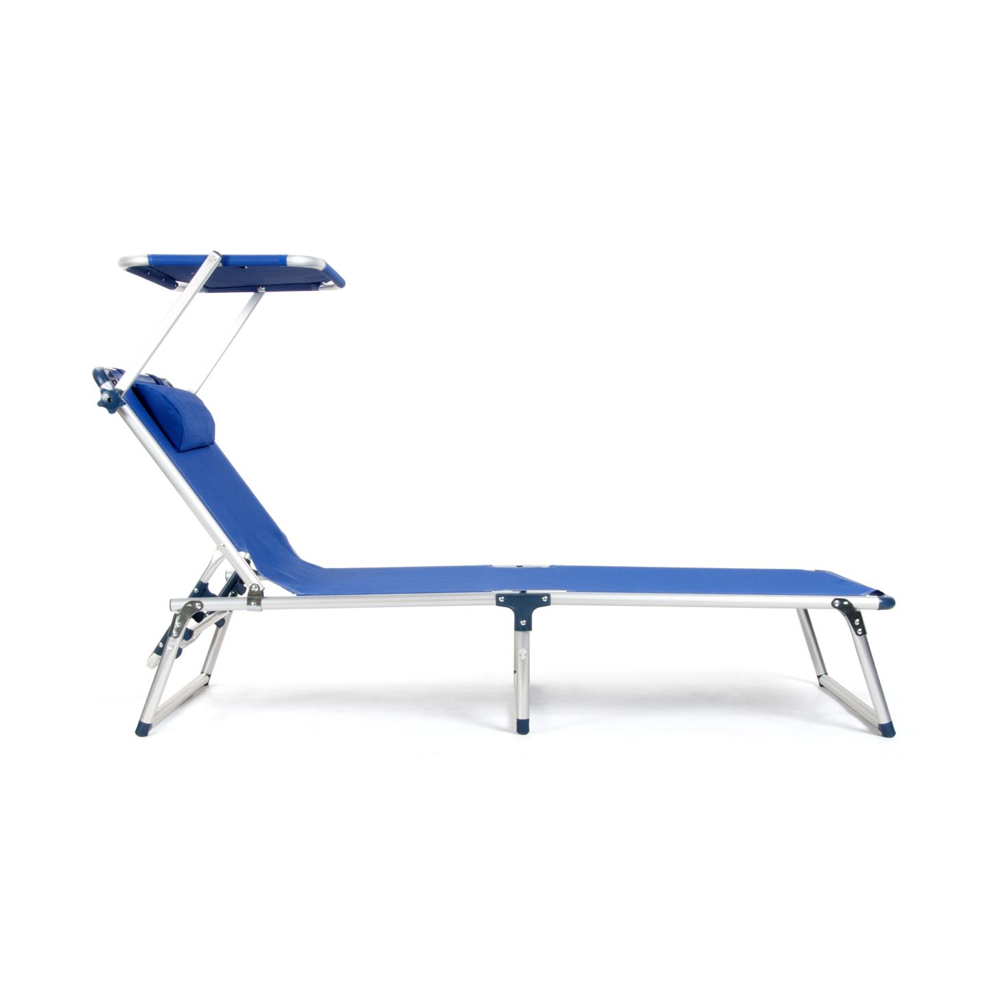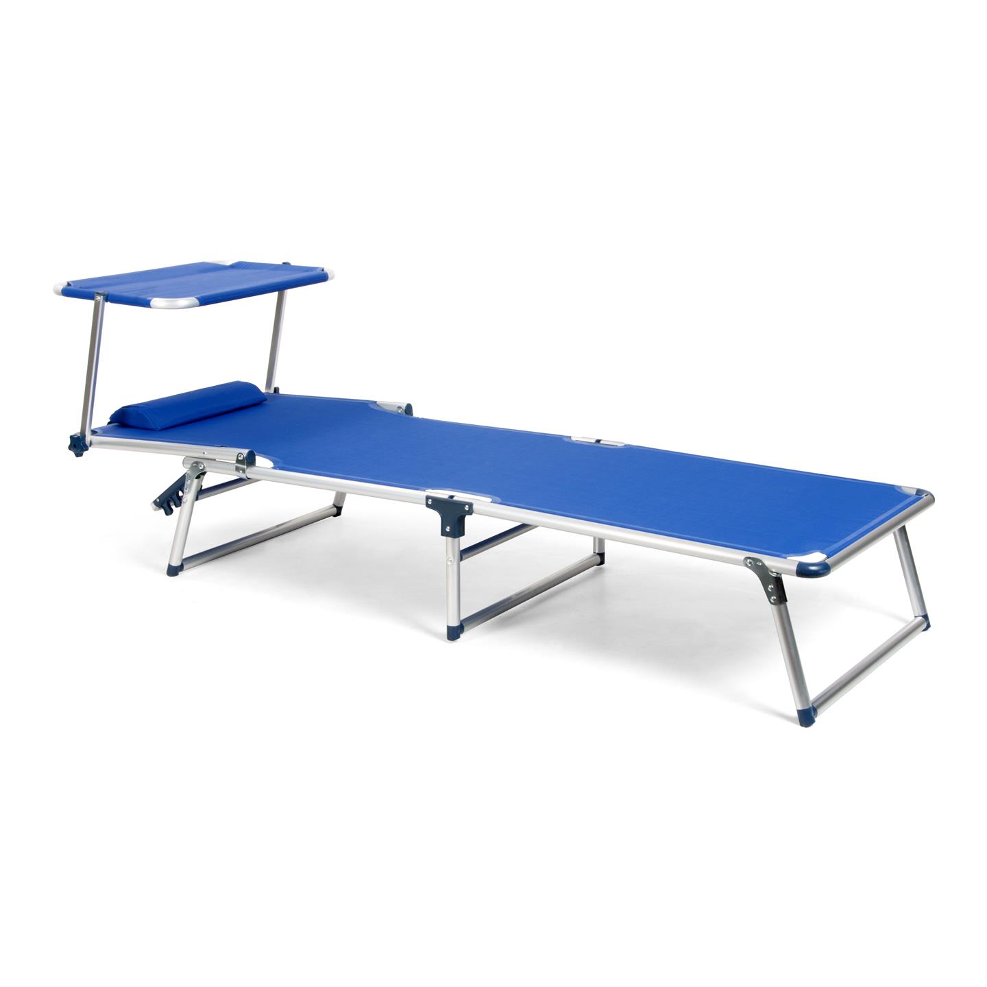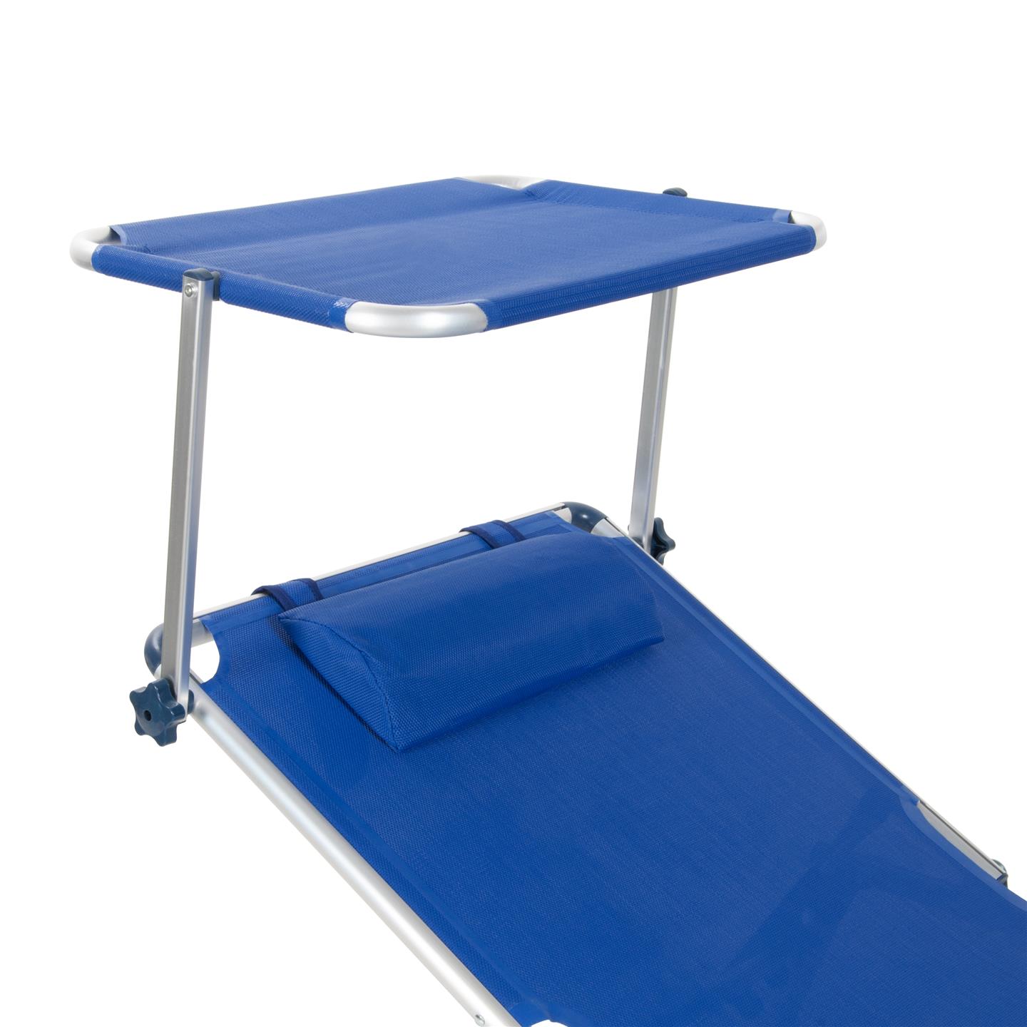 Klappliege mit Sonnendach, Kissen, aluminumstruktur, Textilene–Stoff 2X1 blau, 187 X 60 cm, Rohr Ø 28 mm, Sonnendach 61 X 43 cm