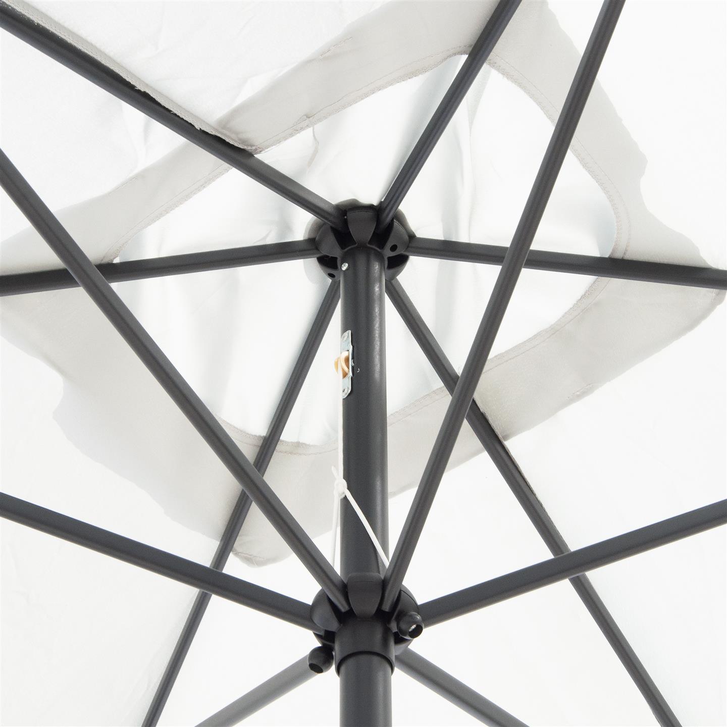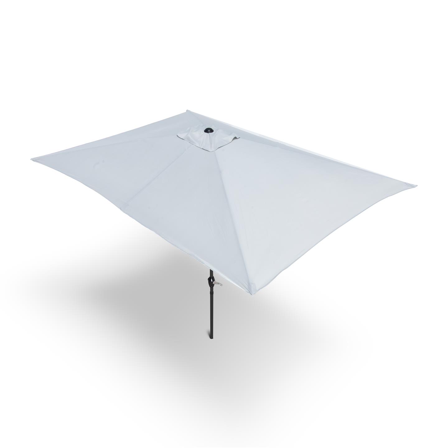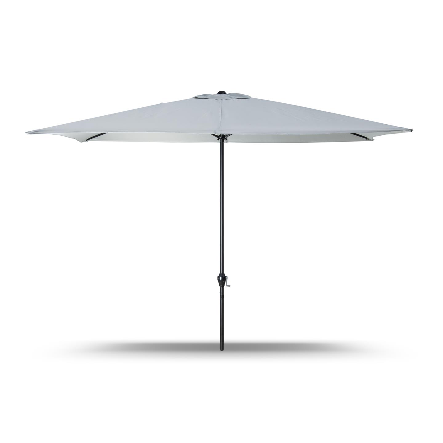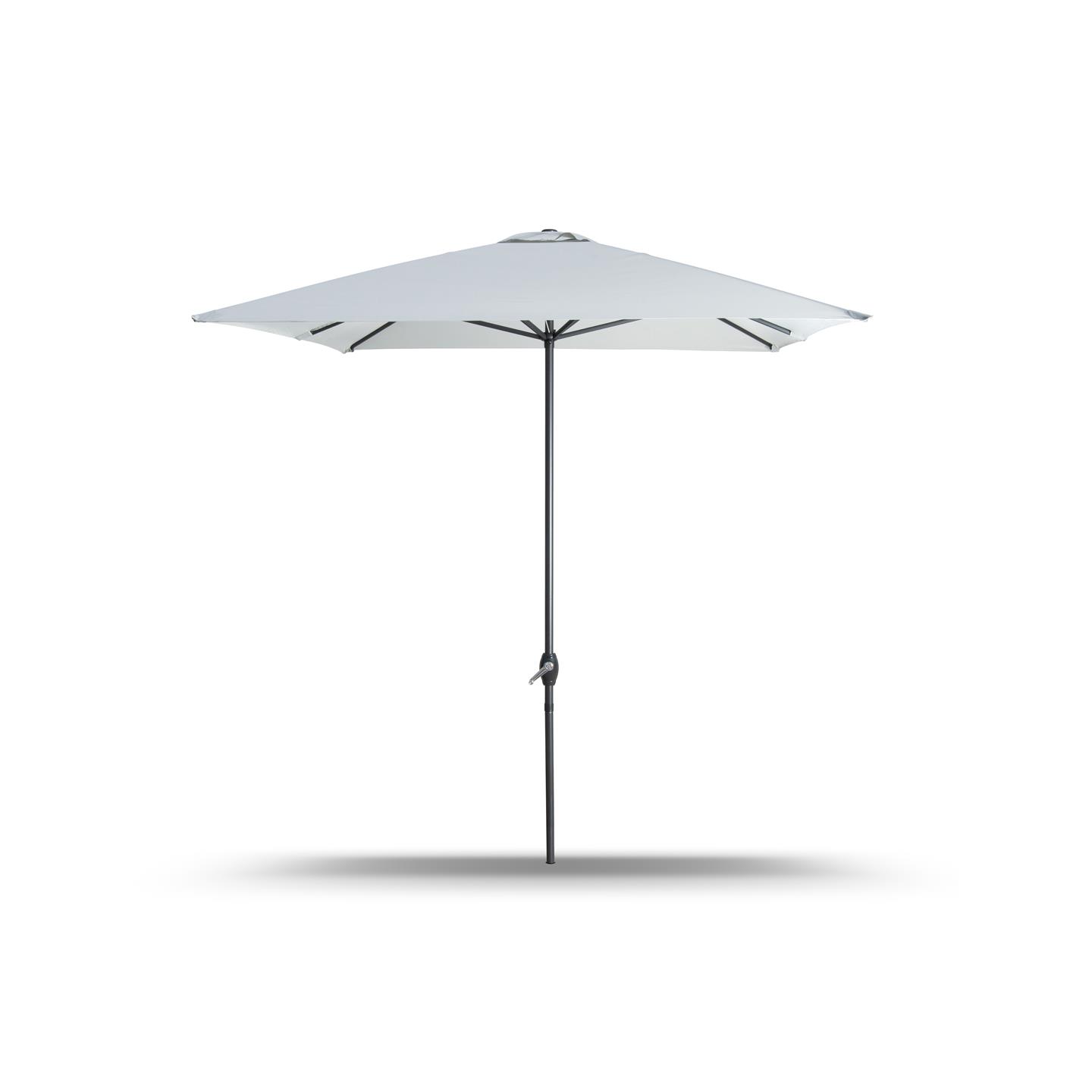 Rechteckiger Regenschirm mit Kurbel, Struktur aus anthrazitgrau pulverbeschichtetem Stahl (matt), 200 x 300 cm, Abschnitt mit 6 Eisenrippen. 34 x 34 mm, Polyestergewebe 150 g/m² grau.