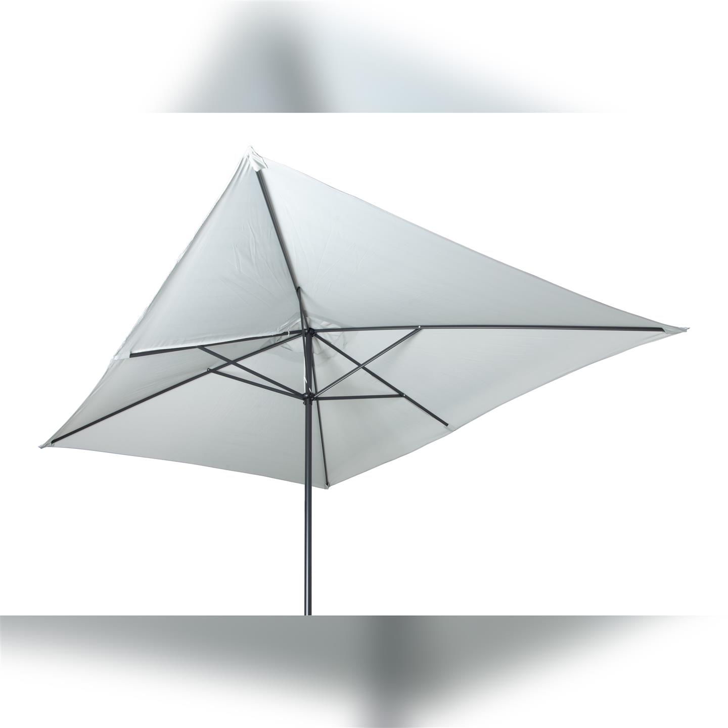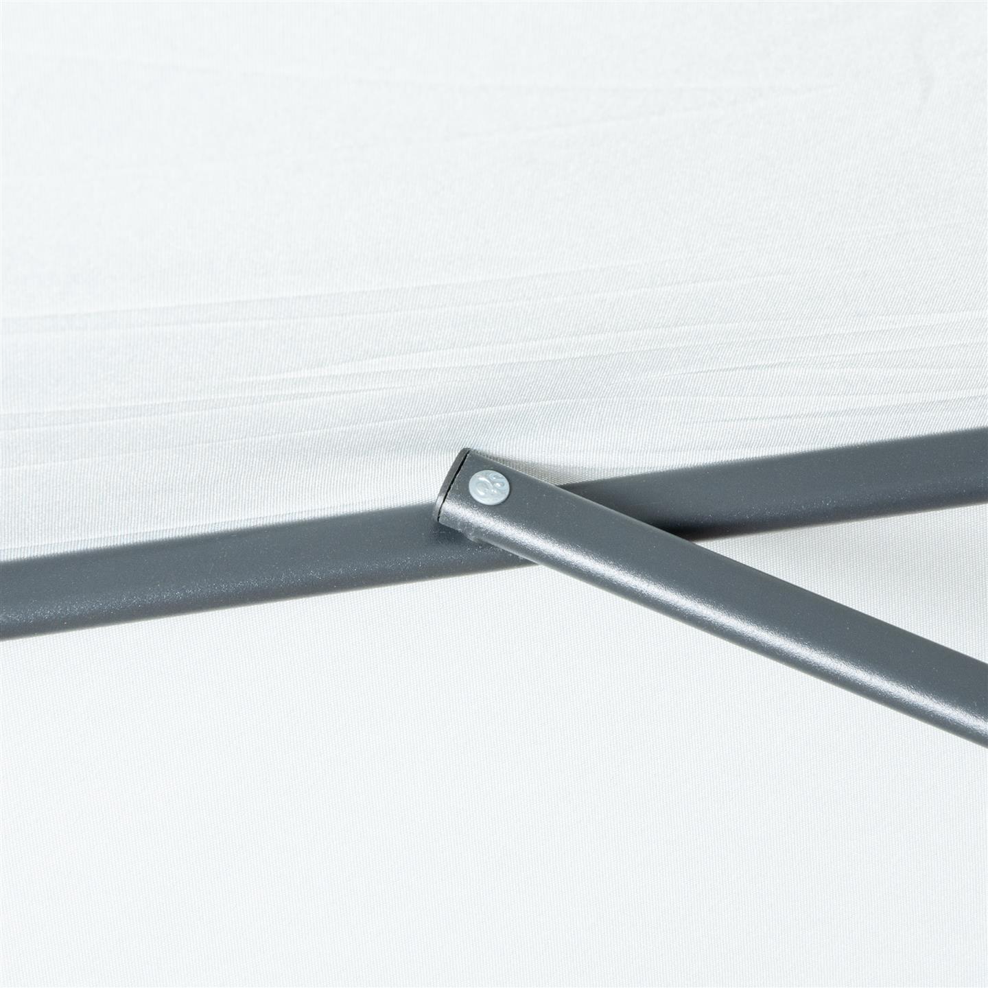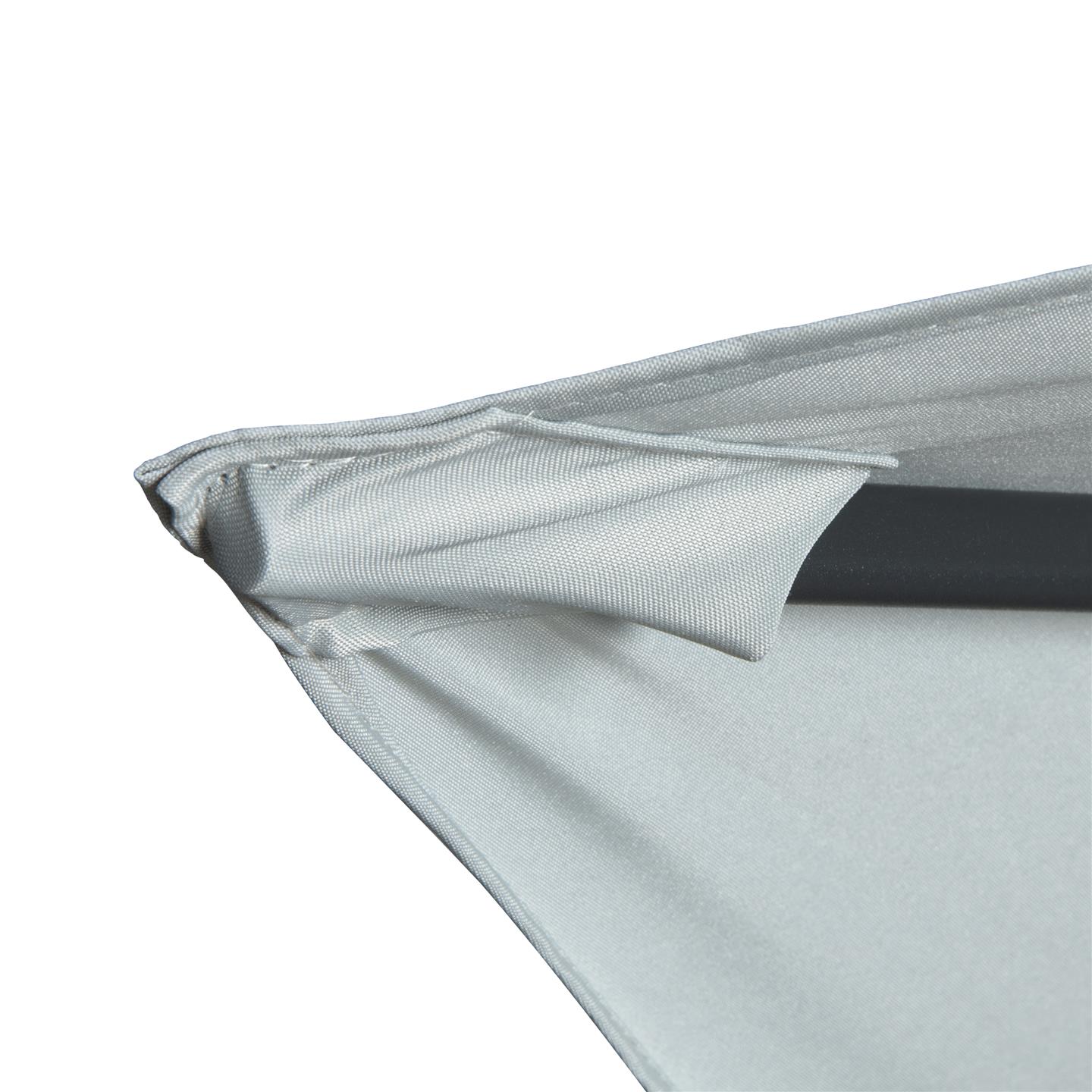 Rechteckiger Regenschirm mit Kurbel, Struktur aus anthrazitgrau pulverbeschichtetem Stahl (matt), 200 x 300 cm, Abschnitt mit 6 Eisenrippen. 34 x 34 mm, Polyestergewebe 150 g/m² grau.
