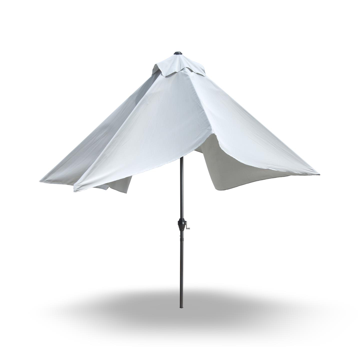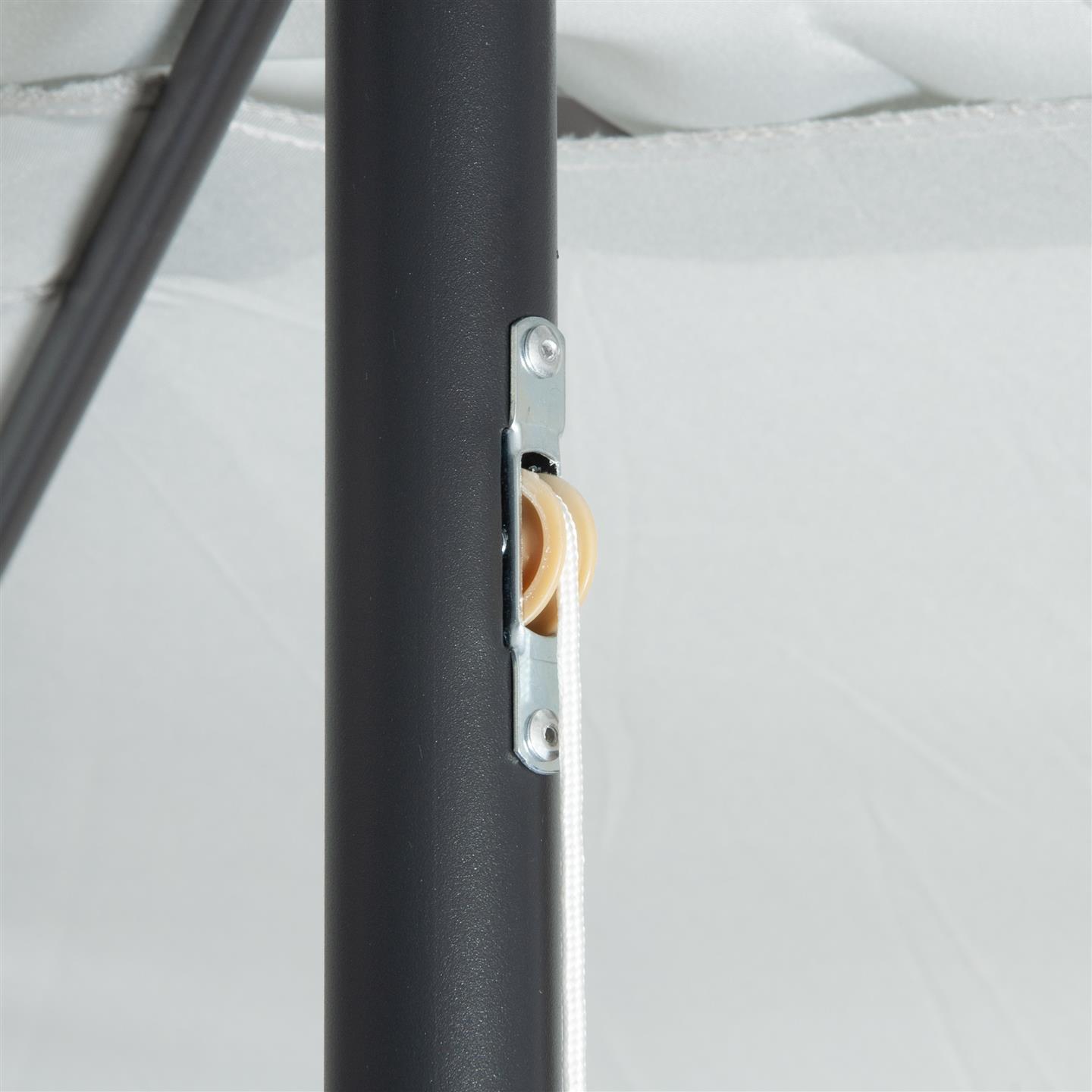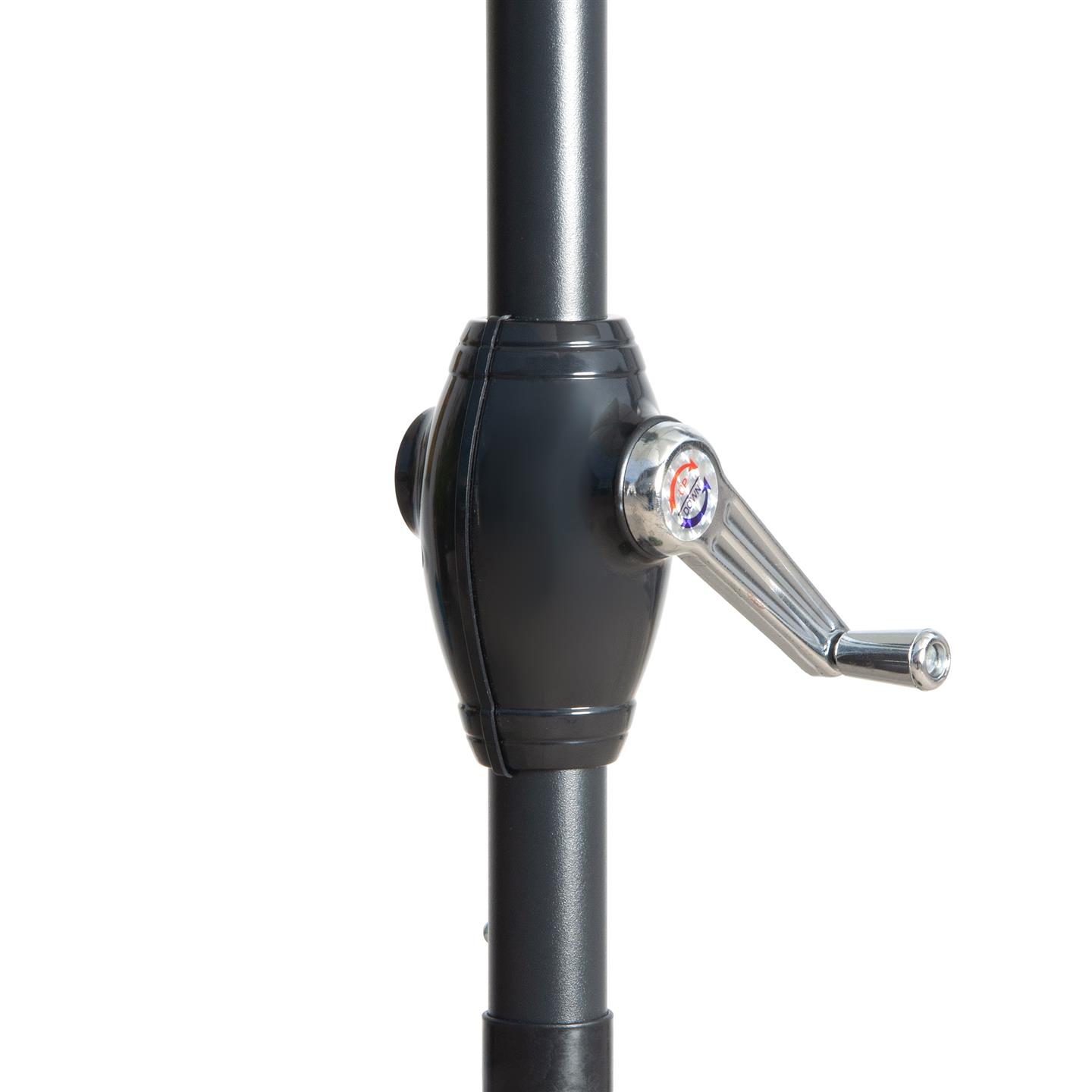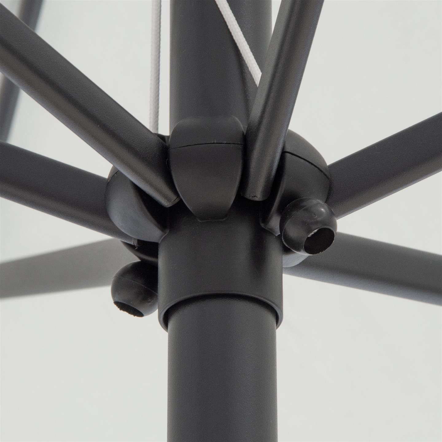 Rechteckiger Regenschirm mit Kurbel, Struktur aus anthrazitgrau pulverbeschichtetem Stahl (matt), 200 x 300 cm, Abschnitt mit 6 Eisenrippen. 34 x 34 mm, Polyestergewebe 150 g/m² grau.