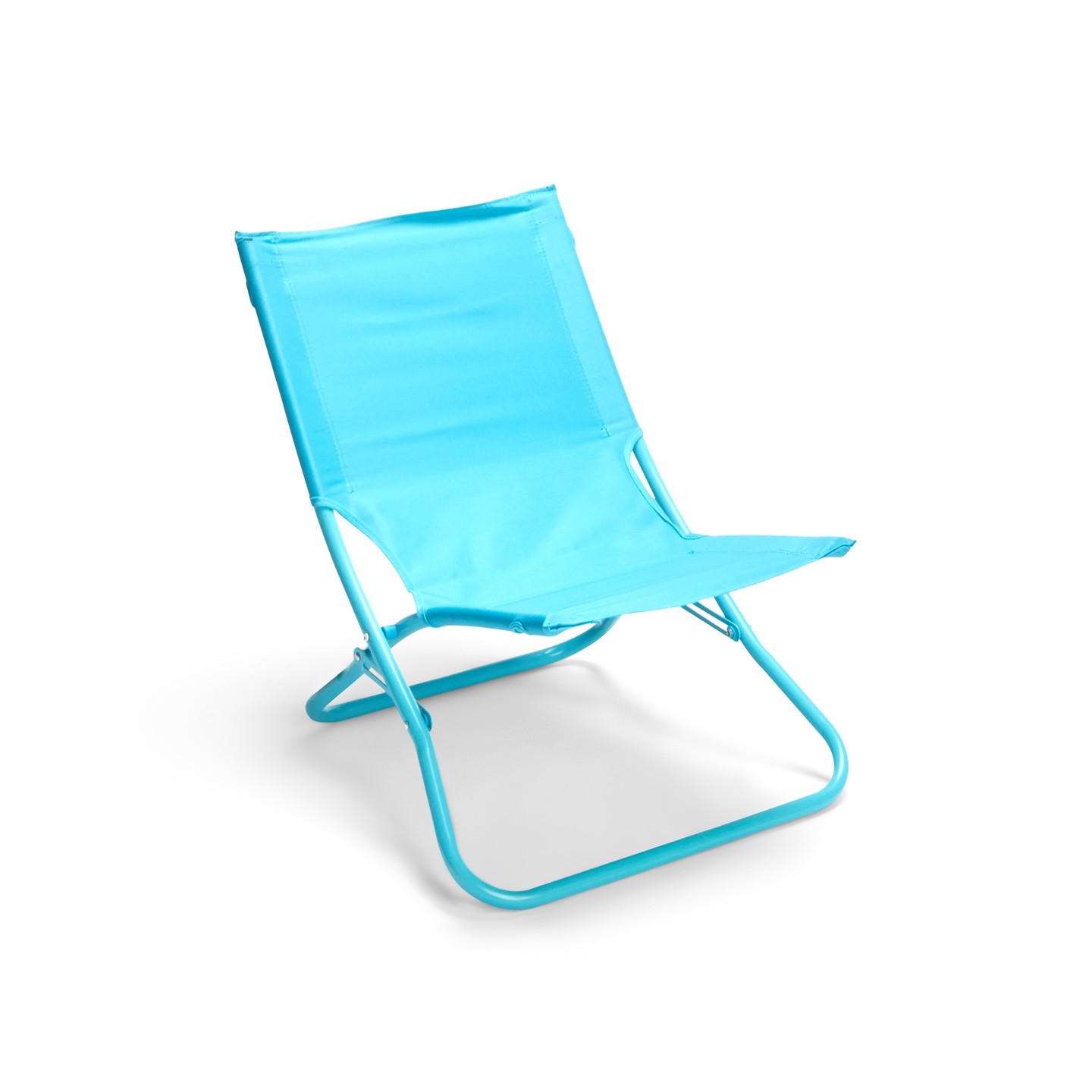 Klappbarer Strandstuhl, Struktur aus pulverbeschichtetem Stahl, passend zum Stoff, Polyestergewebe 600D x 300D mit PVC-beschichtetem Oxford-Gewebe, Farben Rot, Limone, Hellblau und Blau (einfarbig).