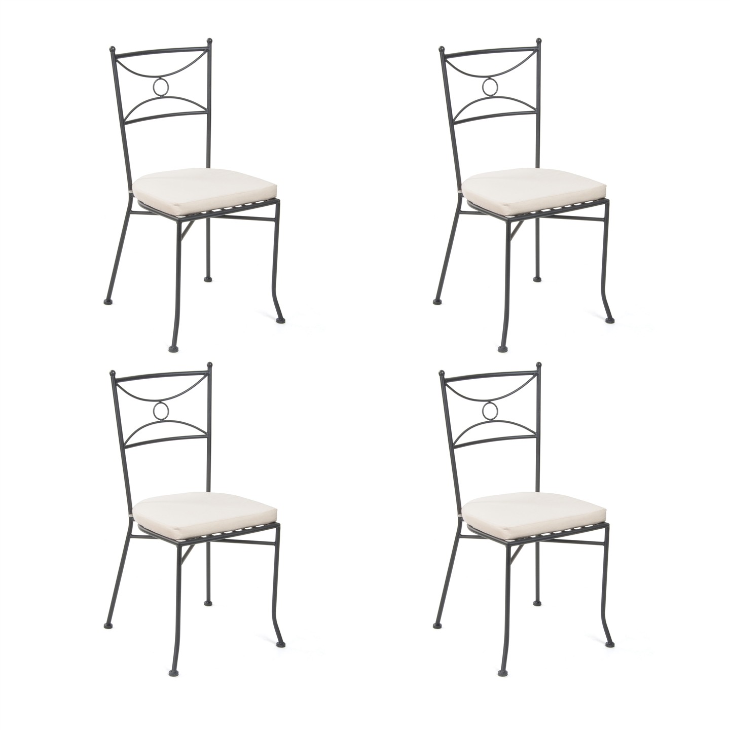Kit of 4 chairs with galvanized steel frame and matt black powder coated finish (smooth finish), beige waterproof polyester cushion fabric, thickness 4.5 cm, size 40 X 40 X h 91 cm, tubular Ø 16 mm
