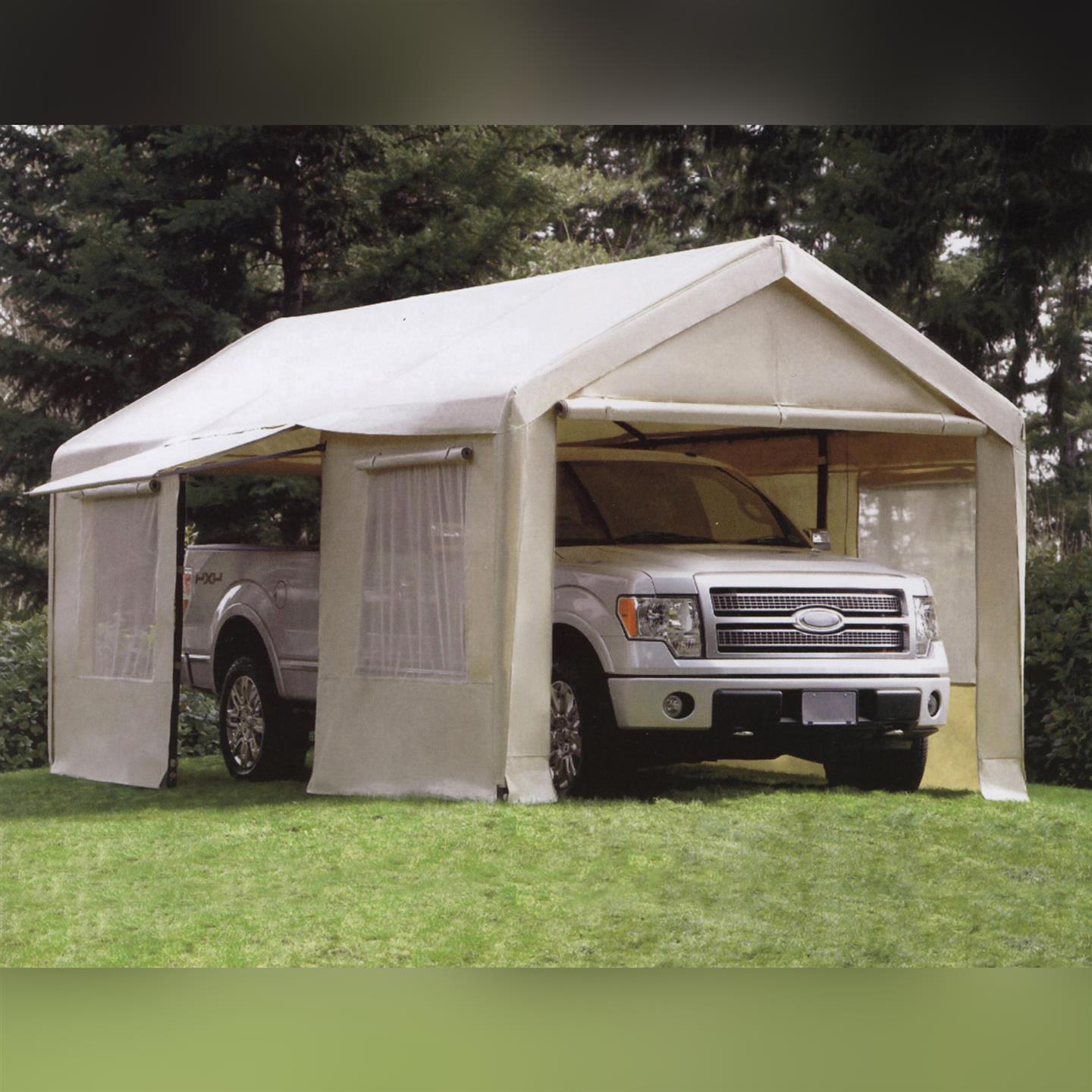 Gazebo garage with side walls, enamelled steel structure, white roof and side walls in polyethylene (PE) 145 g/m², metal connectors. cm 300 X 600, poles Ø mm 48/38, entry height cm 195 X 270, Package weight kg 75