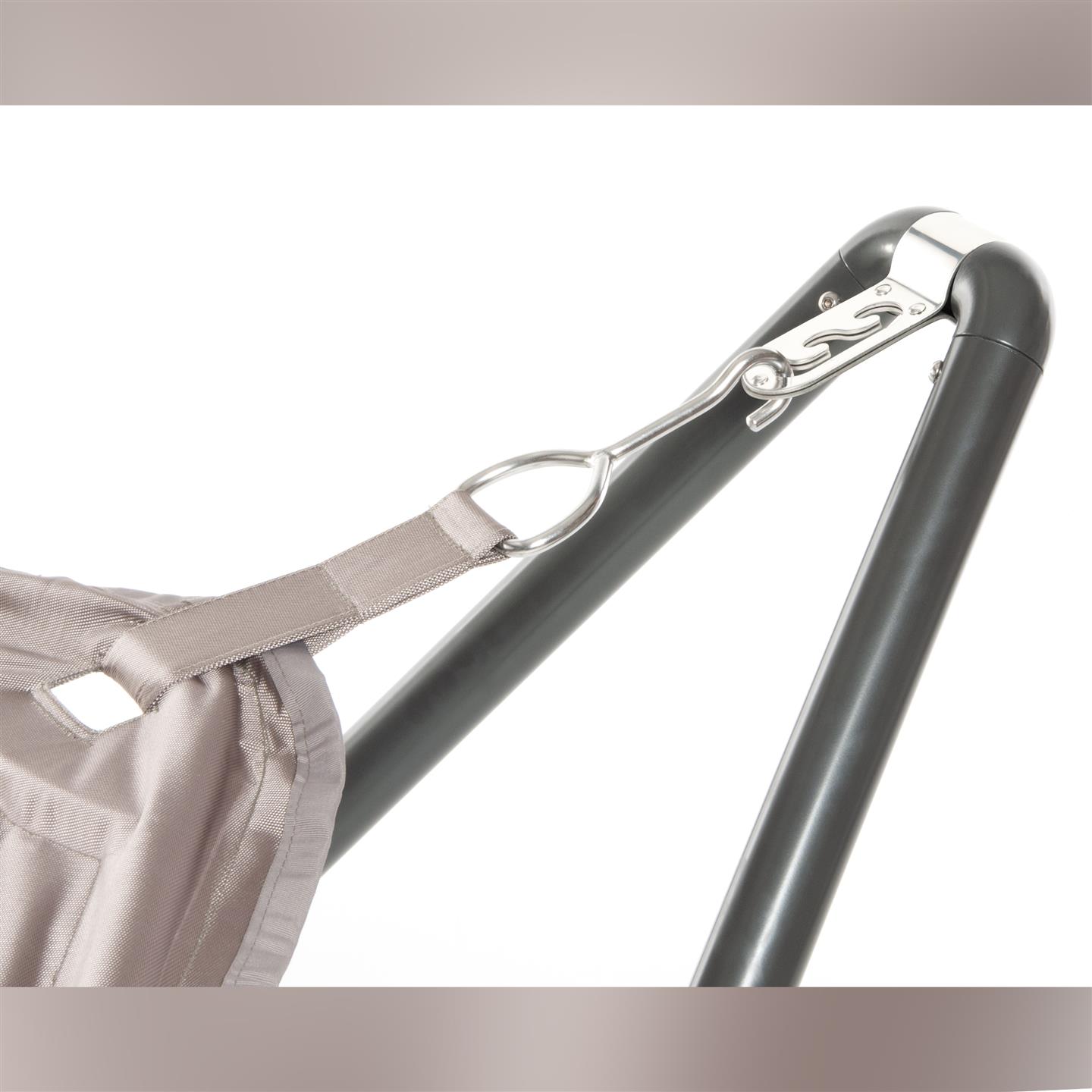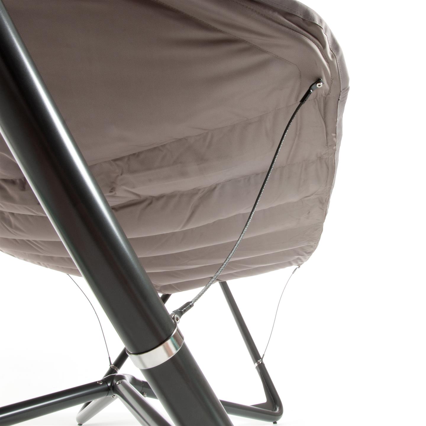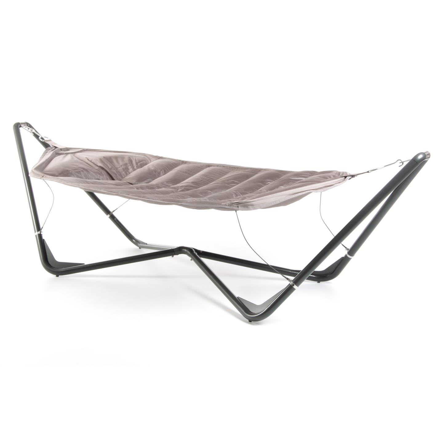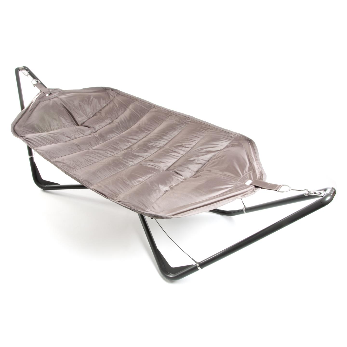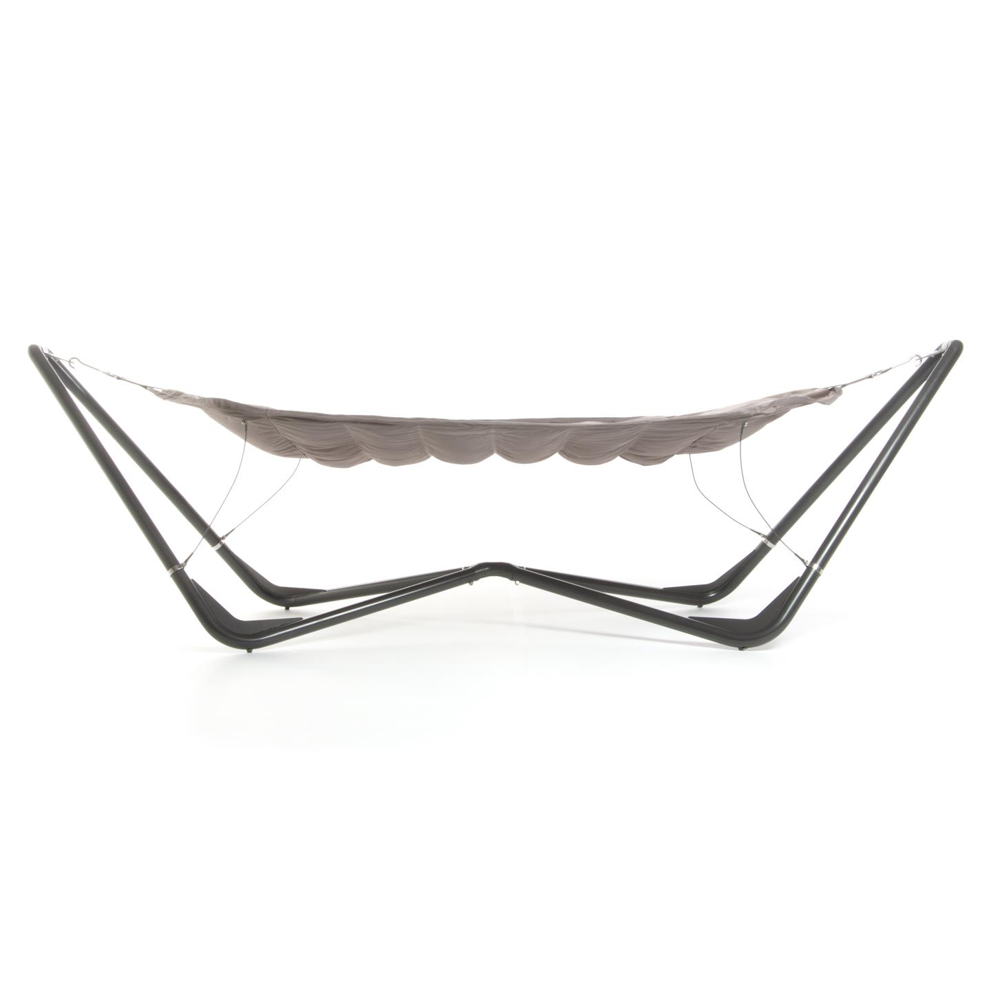 Hammock with steel support, polyester fabric 1680 D with padding, Oxford weave. cm 336 X 130, support poles mm 53 X Ø 1,5 / mm 25 X Ø 1,5.