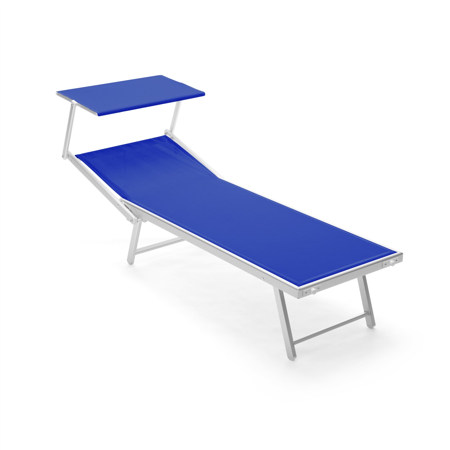 Beach lounger with 2 positions and canopy, cm 181X61X38, poles mm 43X42X1.1 / 40X23X1.2 structure in aluminum, beige textilene fabric 2X1, bolts and screws in stainless steel.