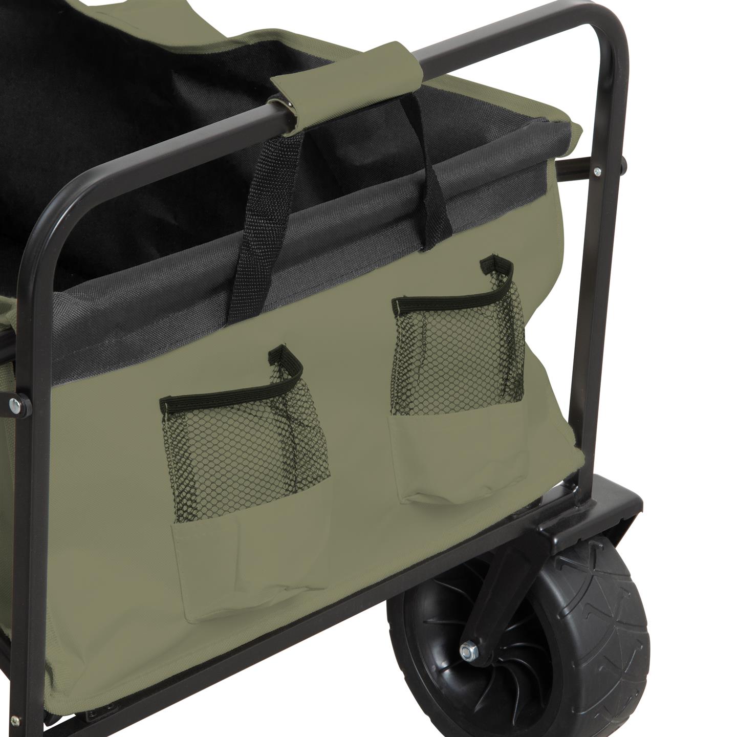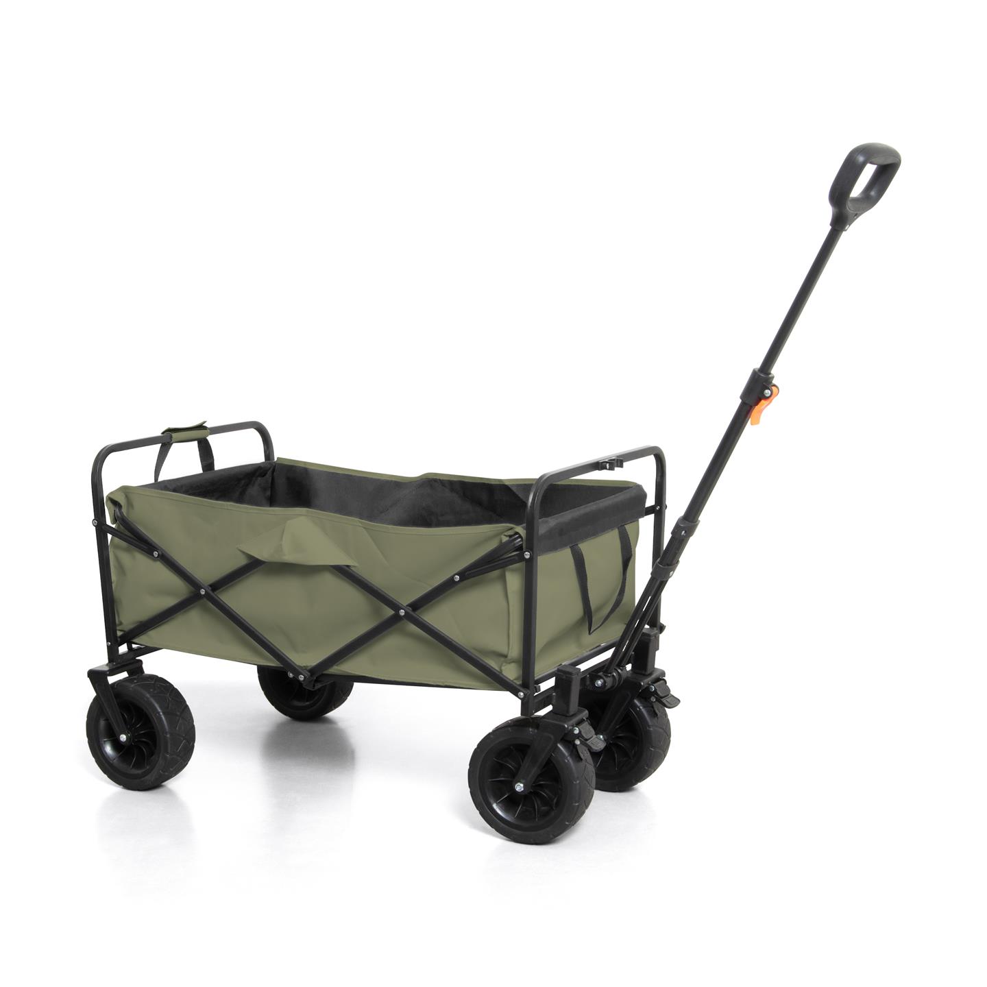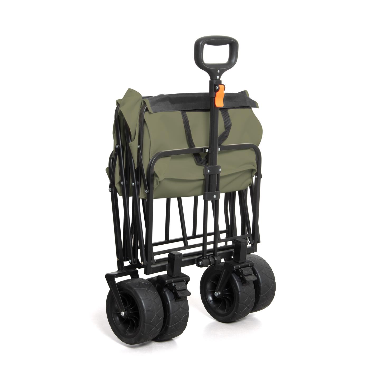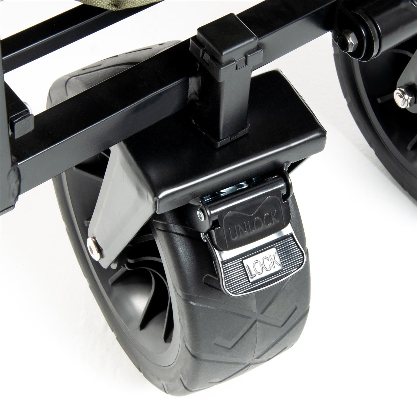 Cart with extendable handle and swivel wheels with brake, black powder-coated steel frame, green 600D polyester fabric coated with polyurethane (PU), 90 X 58 X h 122 cm, internal dimensions 78 X 45 X h 27 cm, tubular section 0.7 mm, wheels Ø 20.3 X 7.6 cm (rubber studded tread), max. load 100 kg.