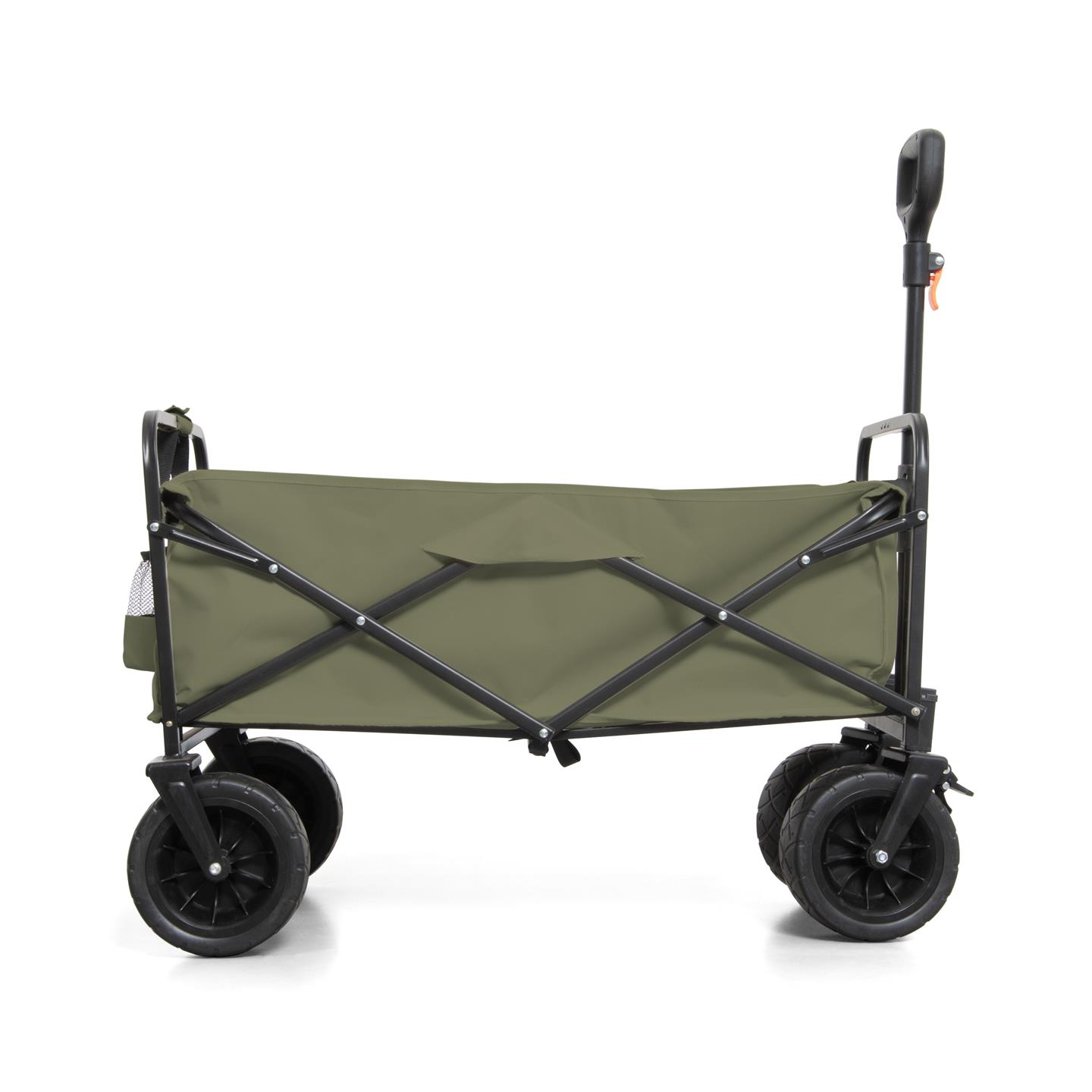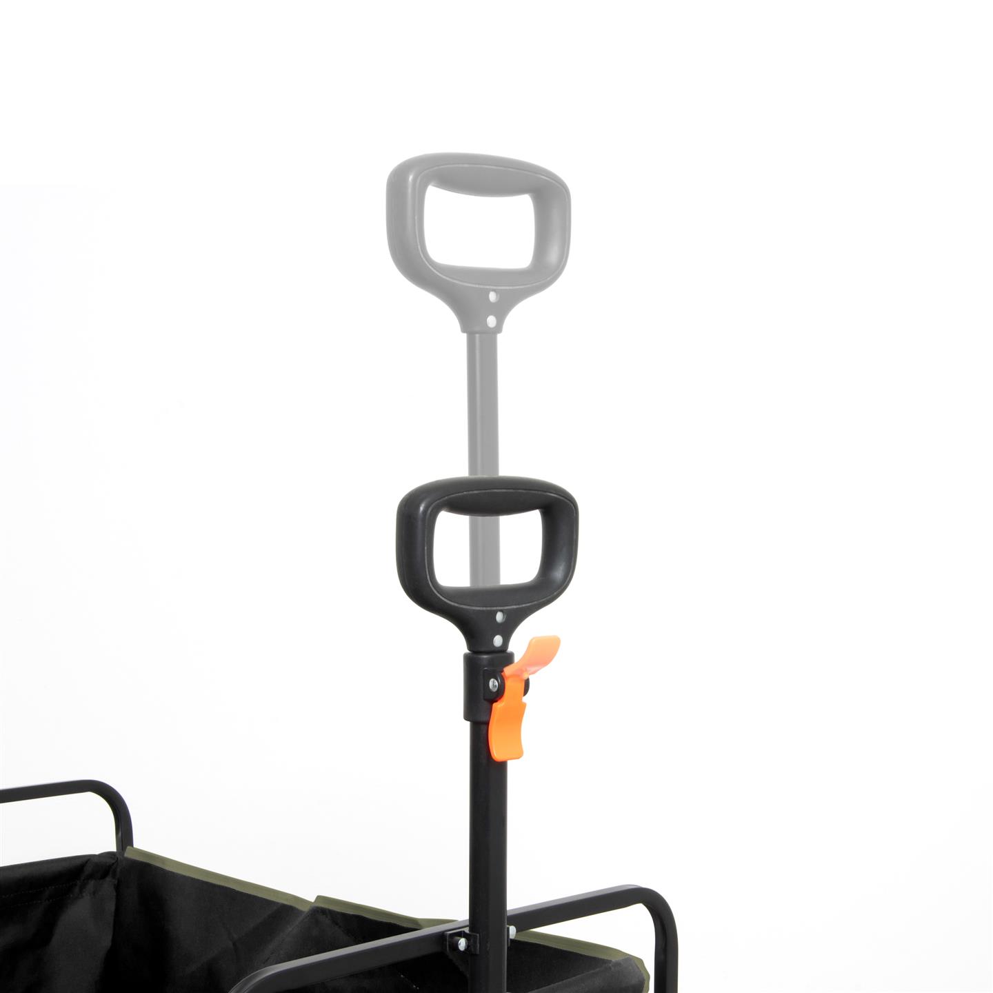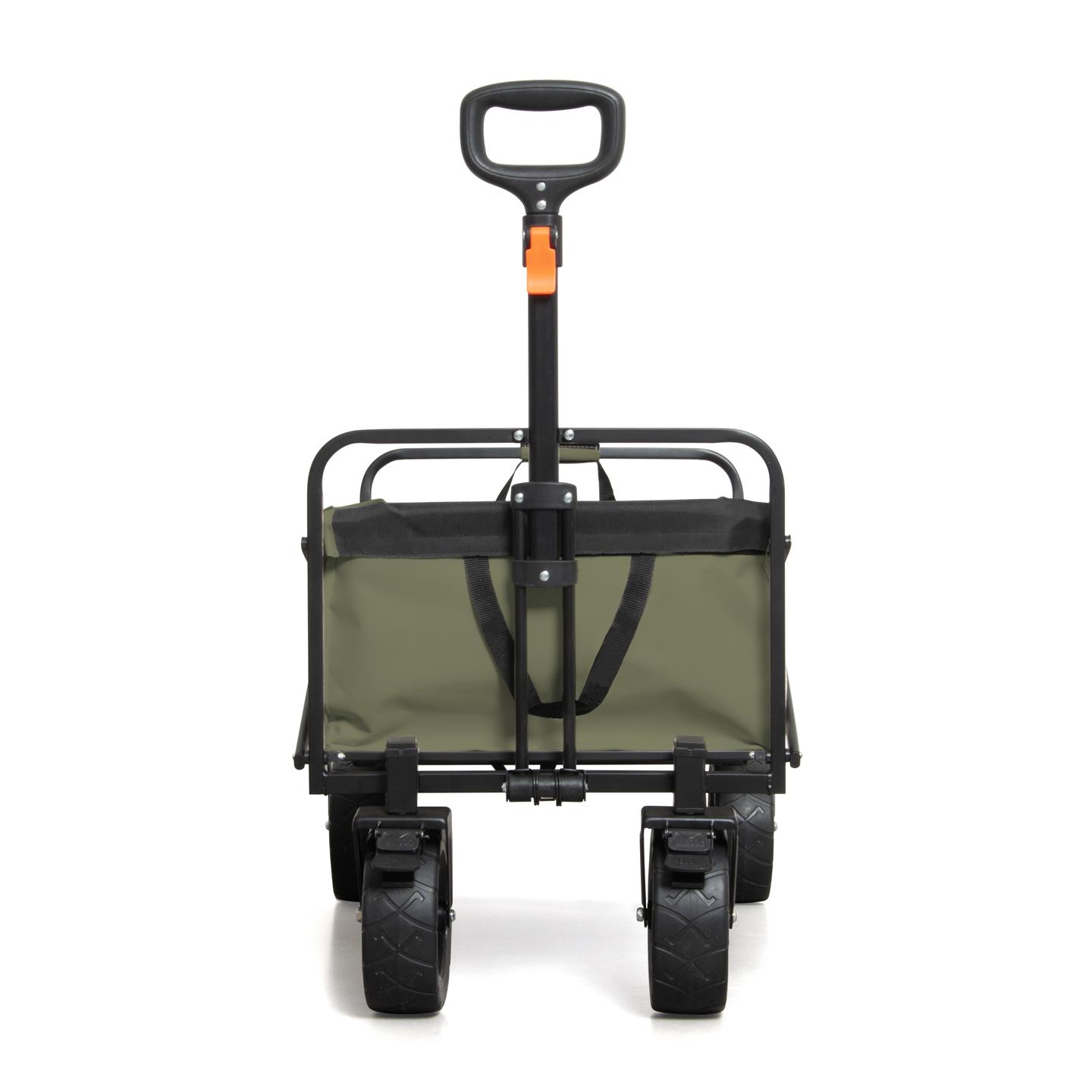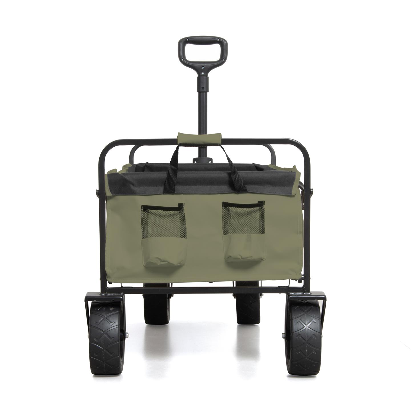 Cart with extendable handle and swivel wheels with brake, black powder-coated steel frame, green 600D polyester fabric coated with polyurethane (PU), 90 X 58 X h 122 cm, internal dimensions 78 X 45 X h 27 cm, tubular section 0.7 mm, wheels Ø 20.3 X 7.6 cm (rubber studded tread), max. load 100 kg.