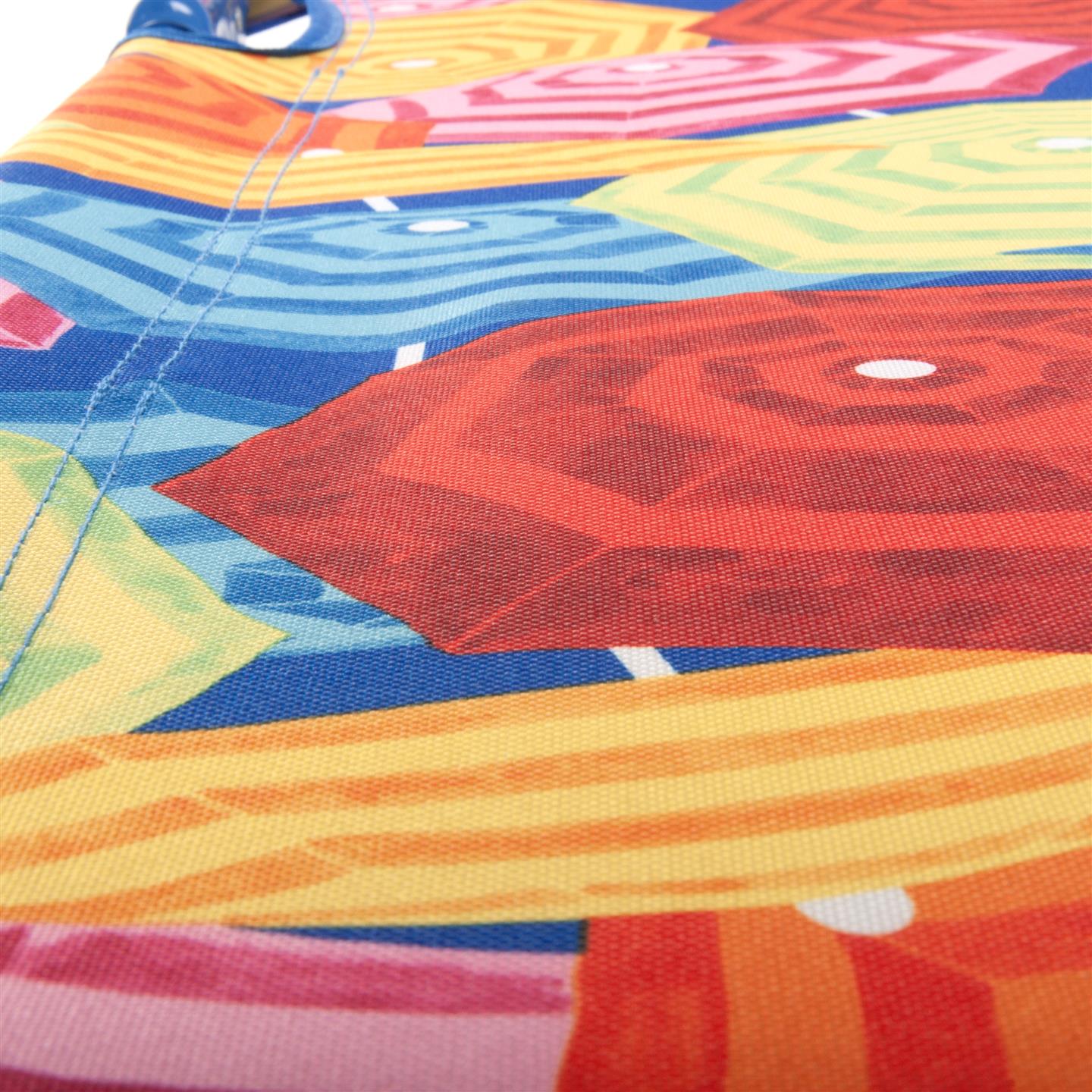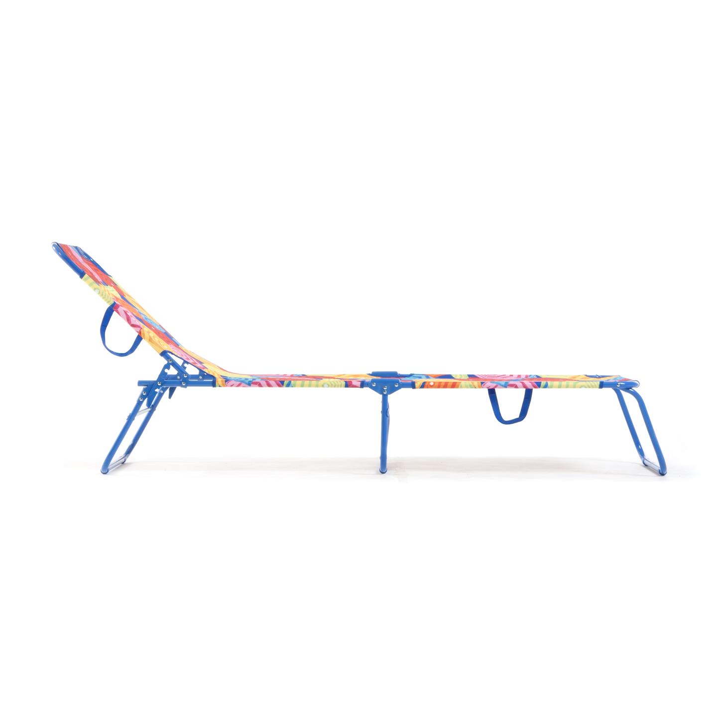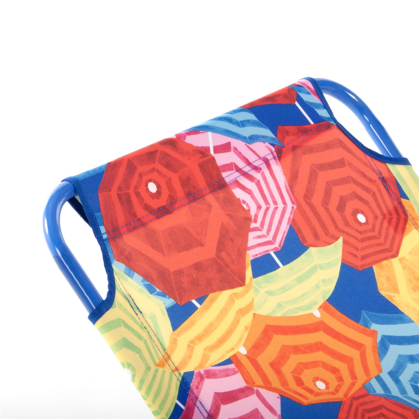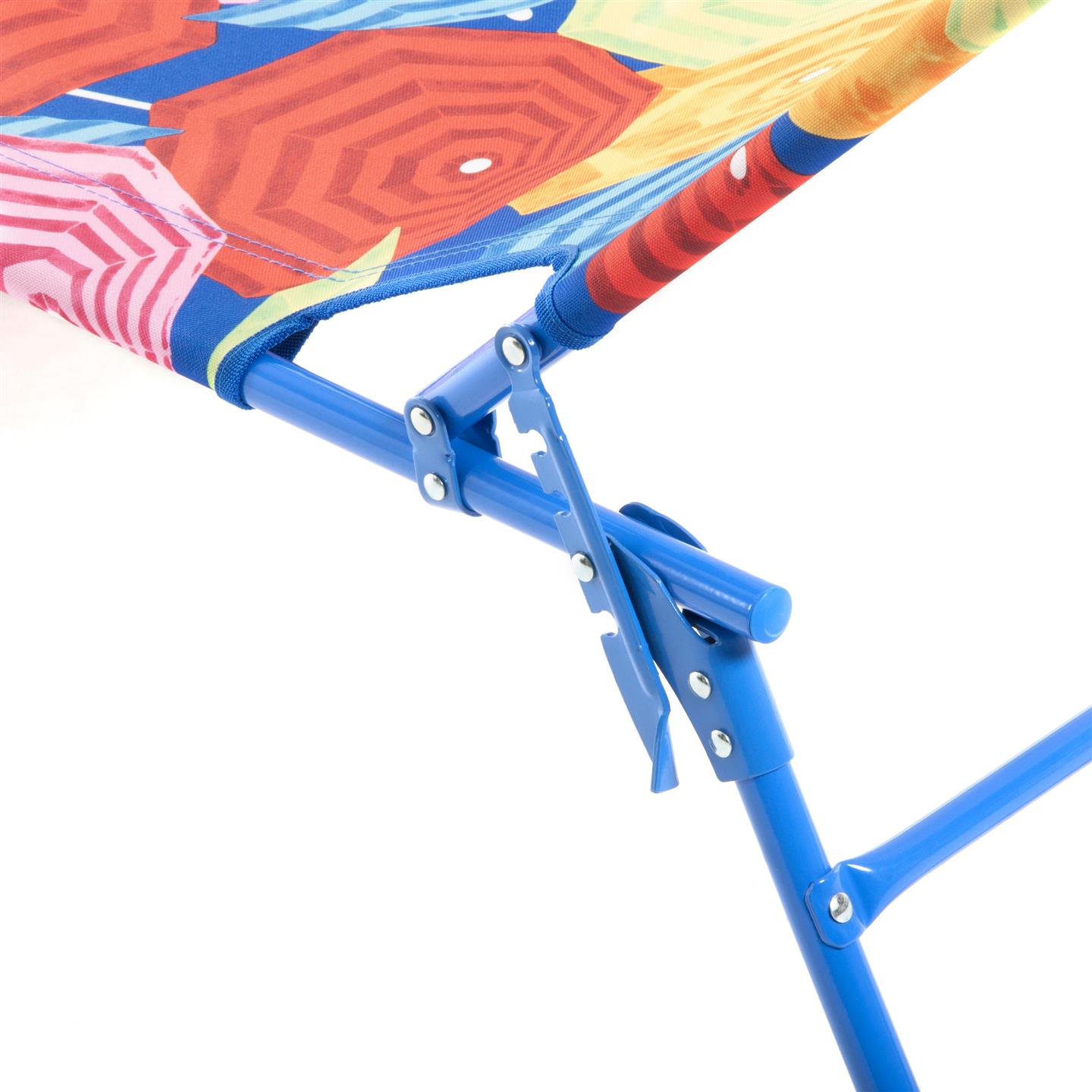 Brandina pieghevole con schienale reclinabile 4 posizioni e maniglie per trasporto. Struttura in acciaio verniciata a polvere blu, tessuto poliestere 600D X 300D trama Oxford spalmato PVC, cm 189 X 58 X h 27 sez. tubolari Ø mm 19 X 1.0