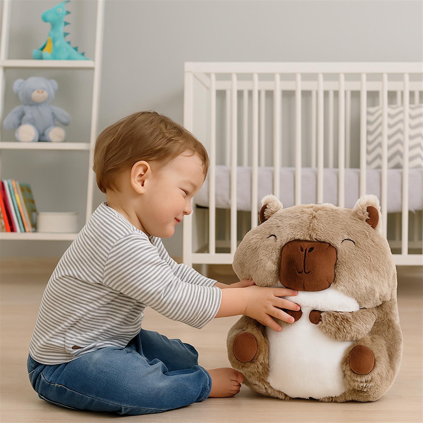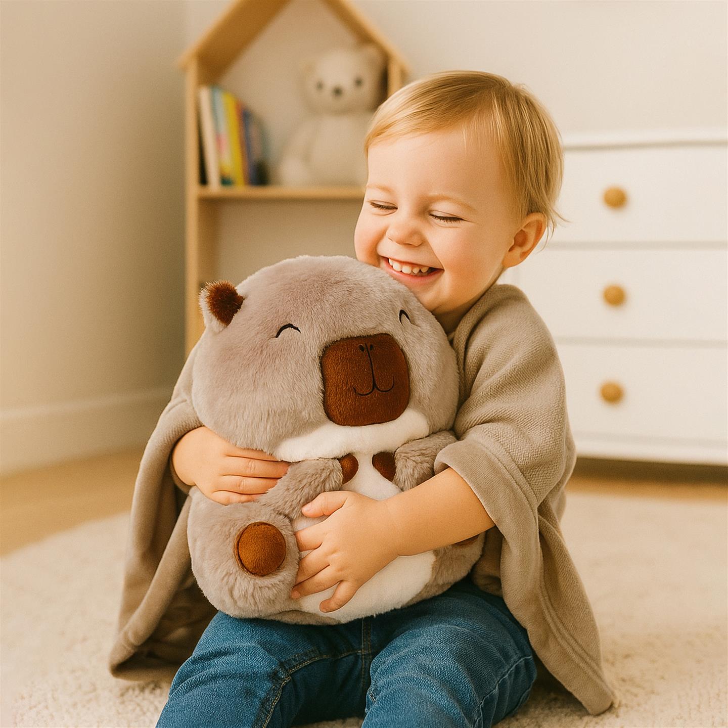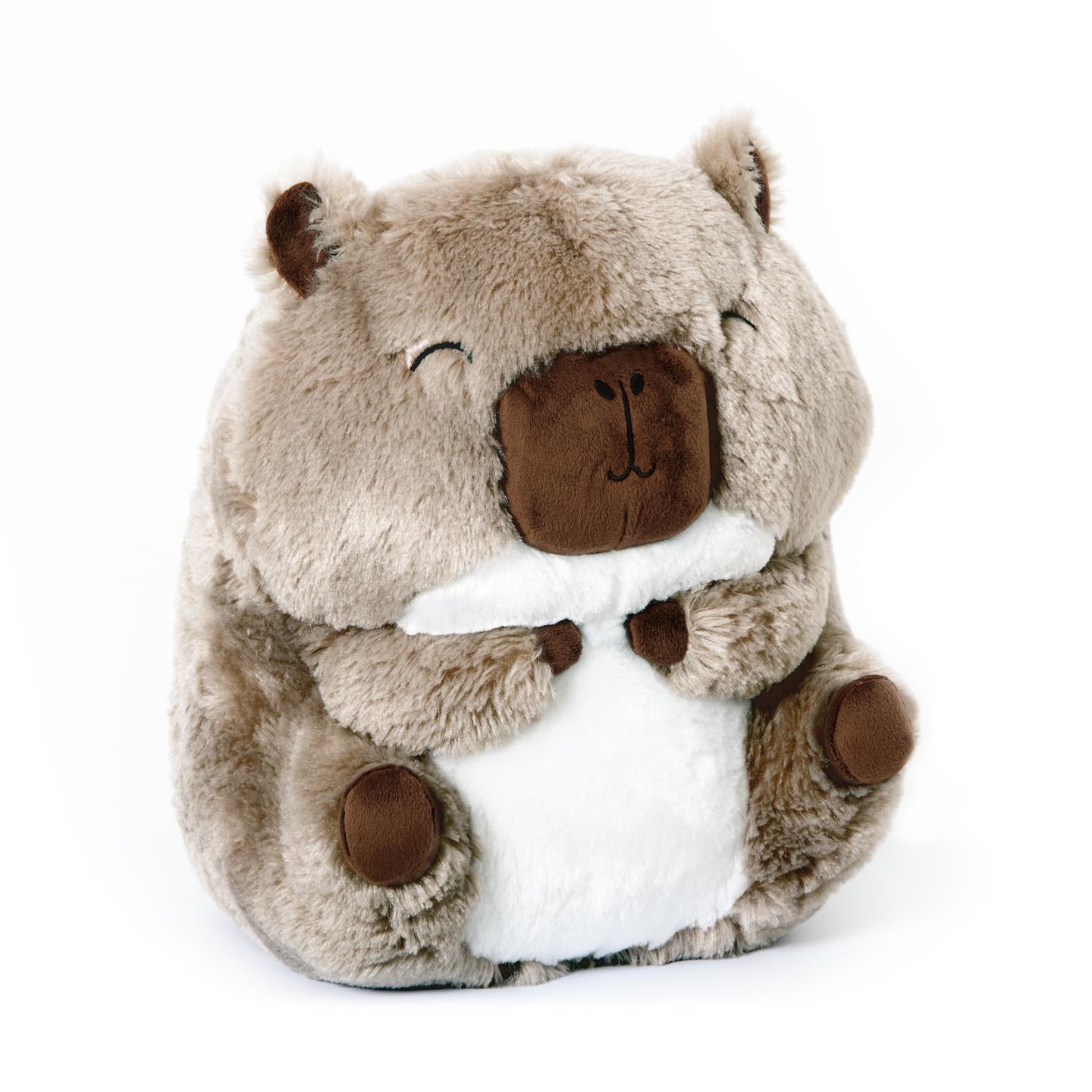 Peluche capibara con coperta integrata in morbido poliestere g 230/m². La coperta si estrae dal peluche grazie alla zip posta nella parte posteriore. Dimensioni peluche cm 26 X 24 X h 31 coperta cm 150 X 100.