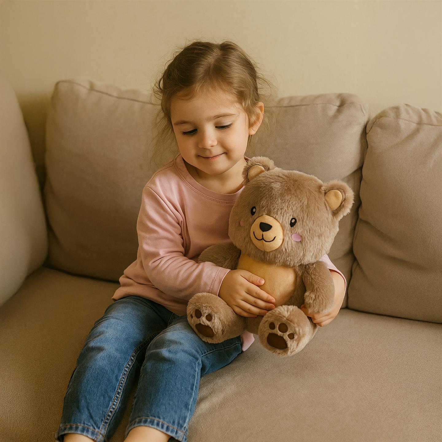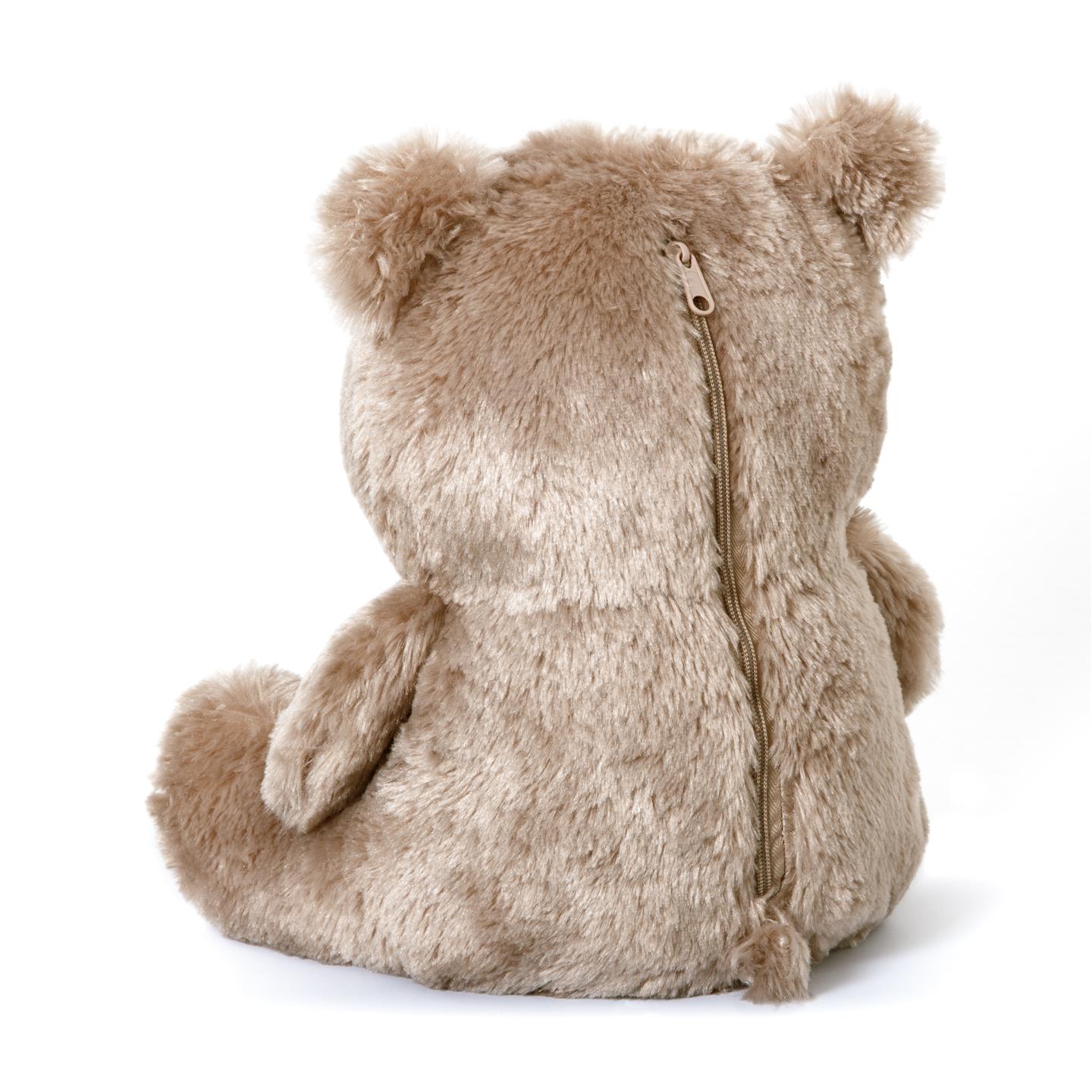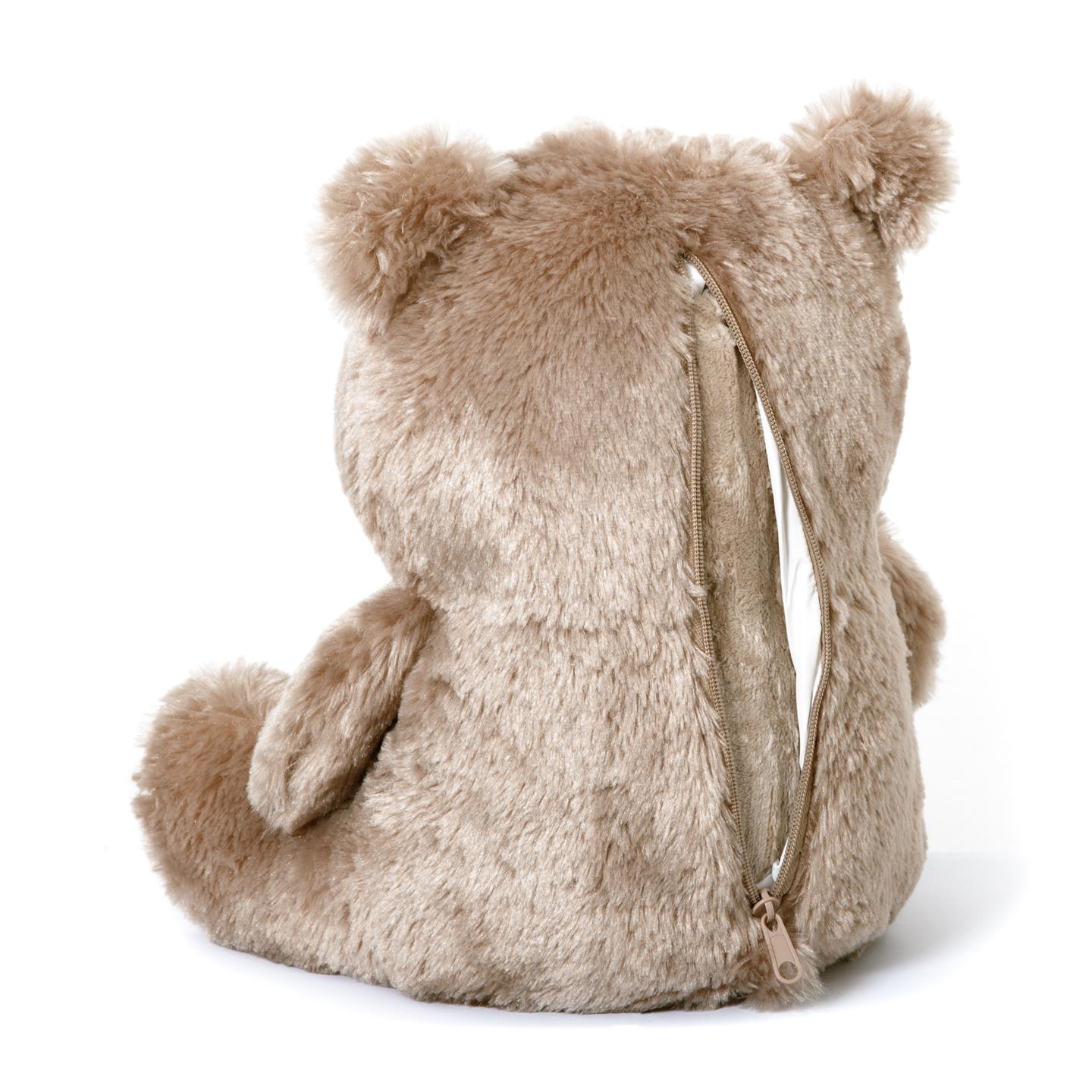Peluche orsetto con coperta integrata in morbido poliestere g 230/m². La coperta si estrae dal peluche grazie alla zip posta nella parte posteriore. Dimensioni peluche cm 25 X 30 X h 34 coperta cm 150 X 100.