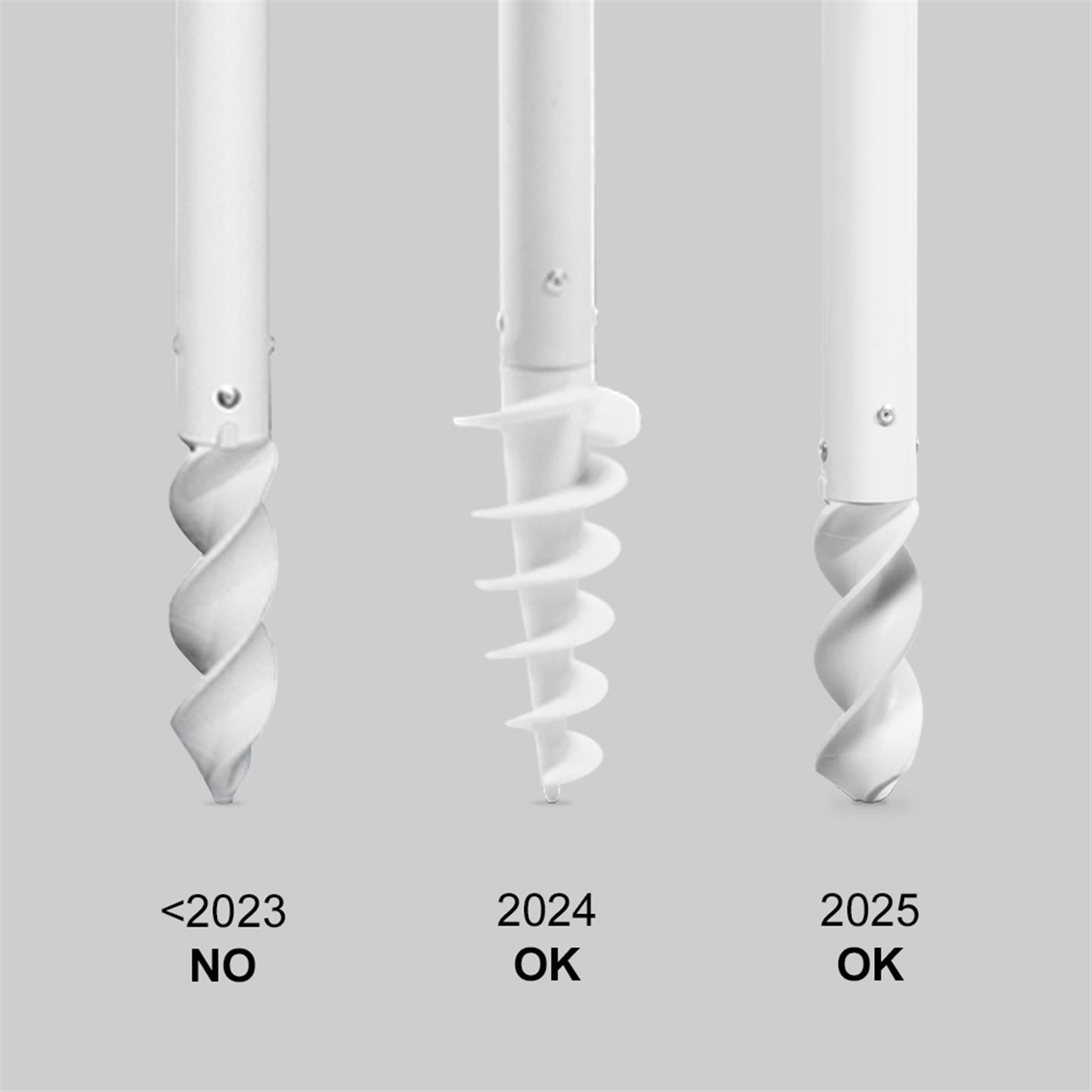 Palo in acciaio verniciato a polvere bianco Ø esterno mm 32, Ø imboccatura mm 28/29 dotato di puntale a trivella. Ricambio per ombrelloni spiaggia a marchio Q.bo