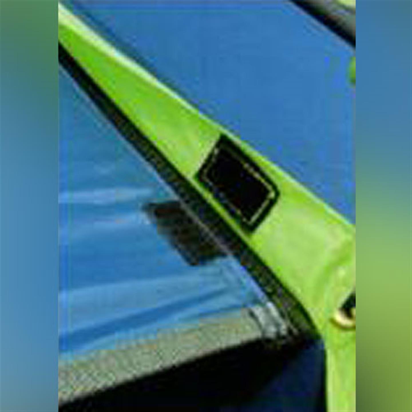 Telo poliestere 100%, resinato colonna d’acqua mm 2000 con cuciture termonastrate. Ancoraggi antivento, guaine guida palo esterne, parete anteriore amovibile, ampie finestre in kristall, balza perimetrale, vano cucina, verandina amovibile.